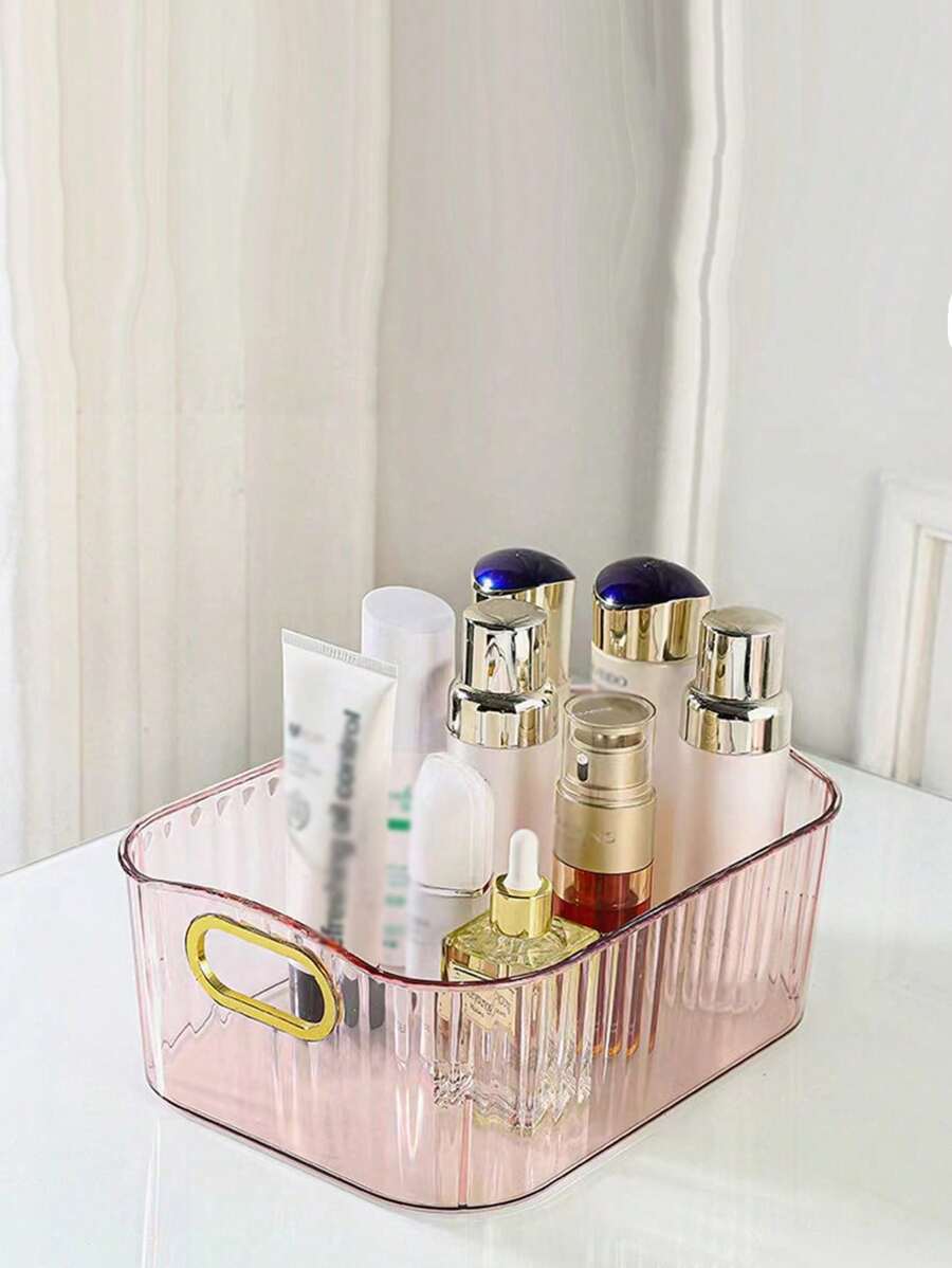1pc Clear Desk Storage Box, Modern PET Double Handle Design Desktop Storage Basket For Home