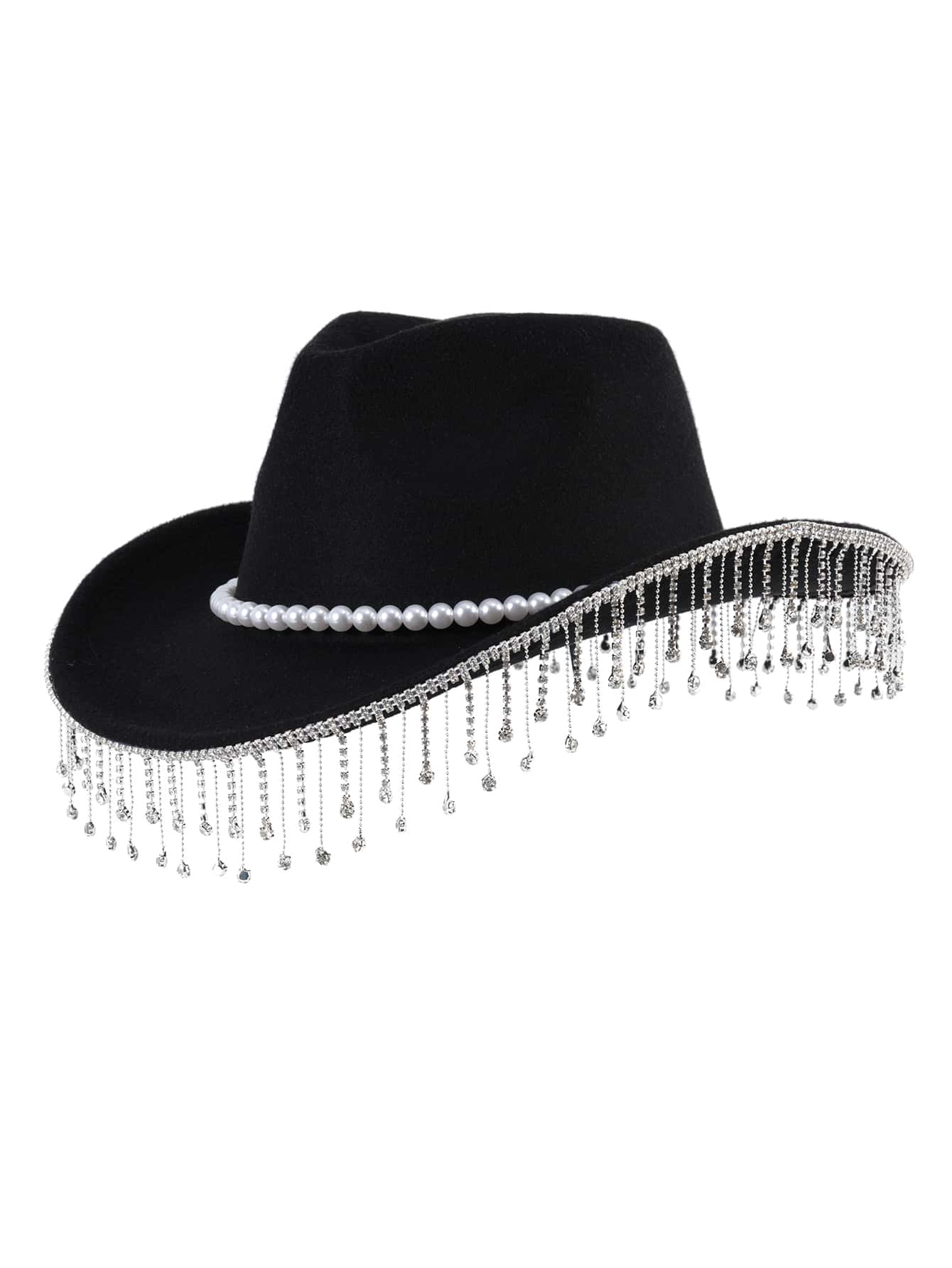 1pc Cowboy Hat With Luxurious Rhinestone And Tassel Design, Elegant Gift/Stage/Wedding/Women's Fashion Accessories, Black