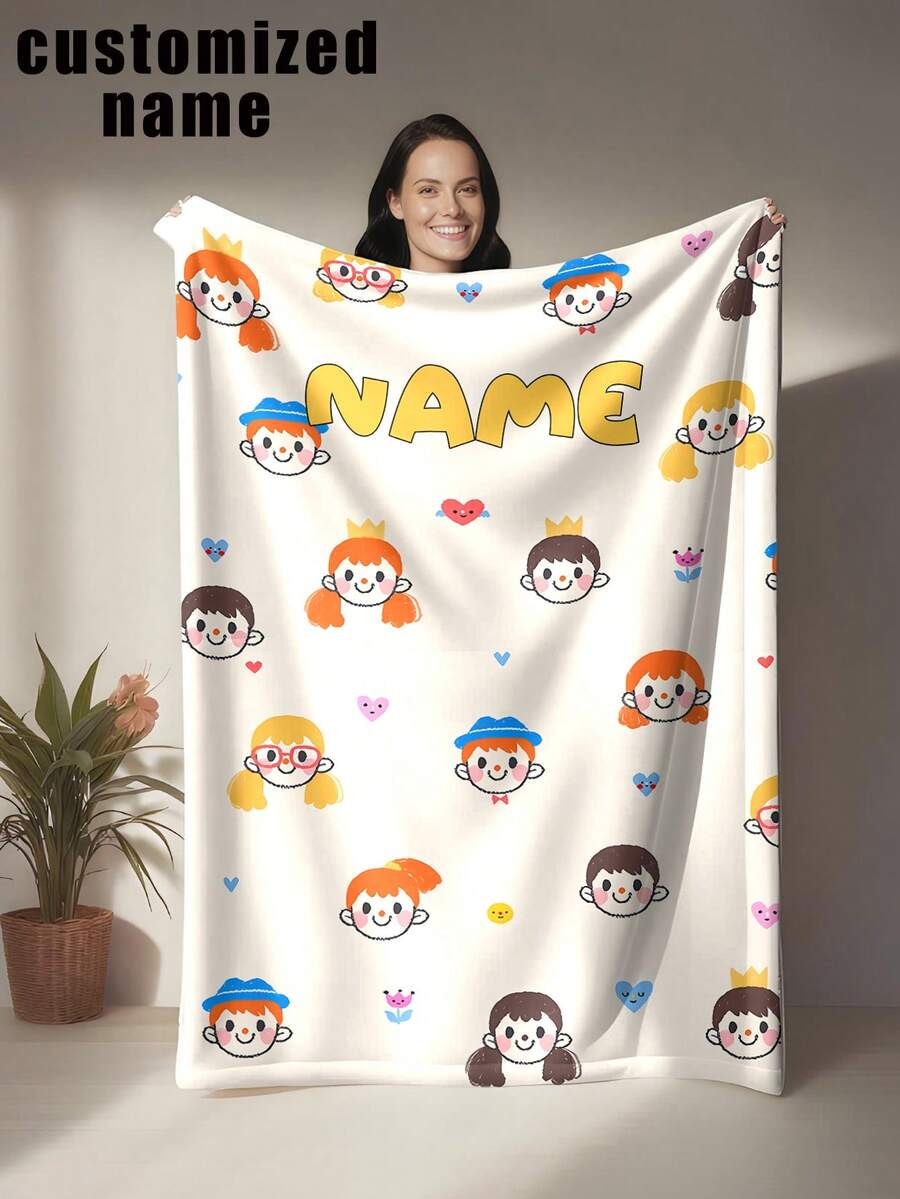 1pc Customizable Cartoon Character Blanket - Soft, Comfortable And Warm Personalized Throw Pillow, Suitable For Home, Office Or Camping Use - An Excellent Gift For Family And Friends, Personalized Blanket