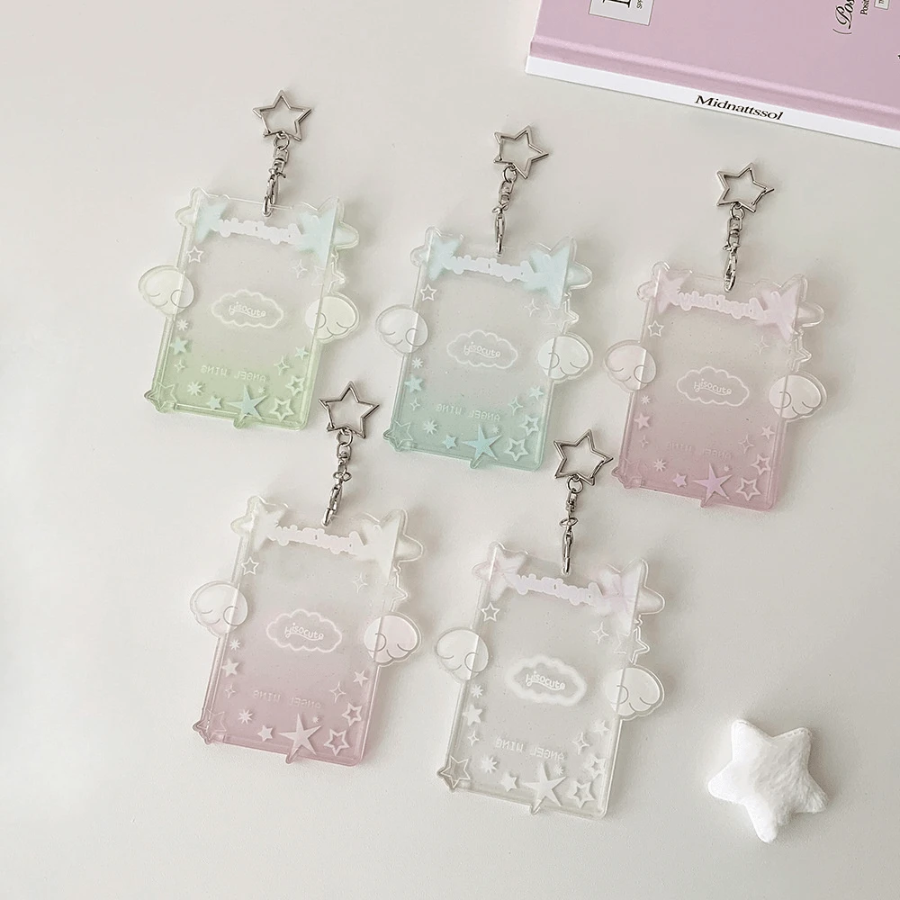 1pc Cute Angel & Star Print Card Holder, Student 3-Inch Photo Display Clip, Bus Card Case