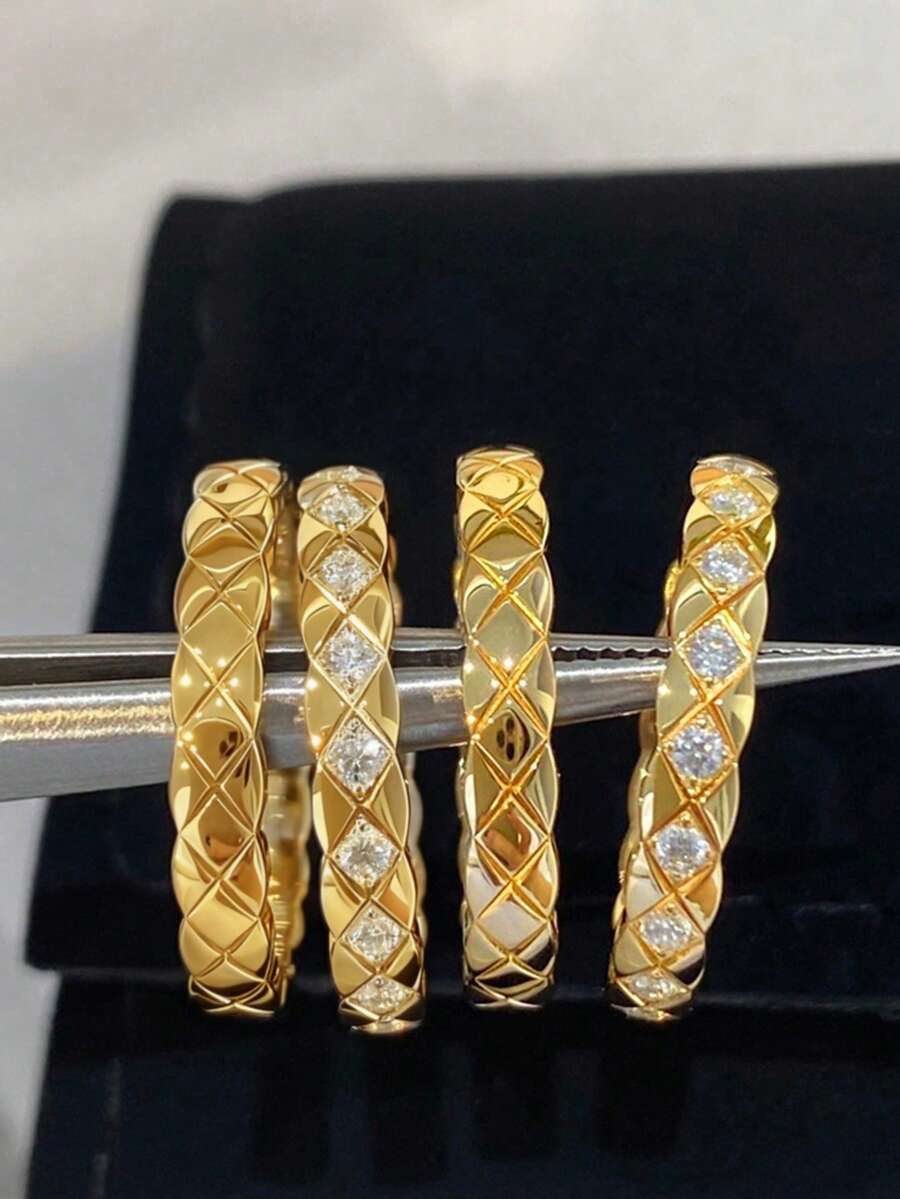 • 1pc Diamond Lattice Ring For Women 925 Sterling Silver Thin Rings Thumb Rings Fine Jewelry Gift - Gold - View 11