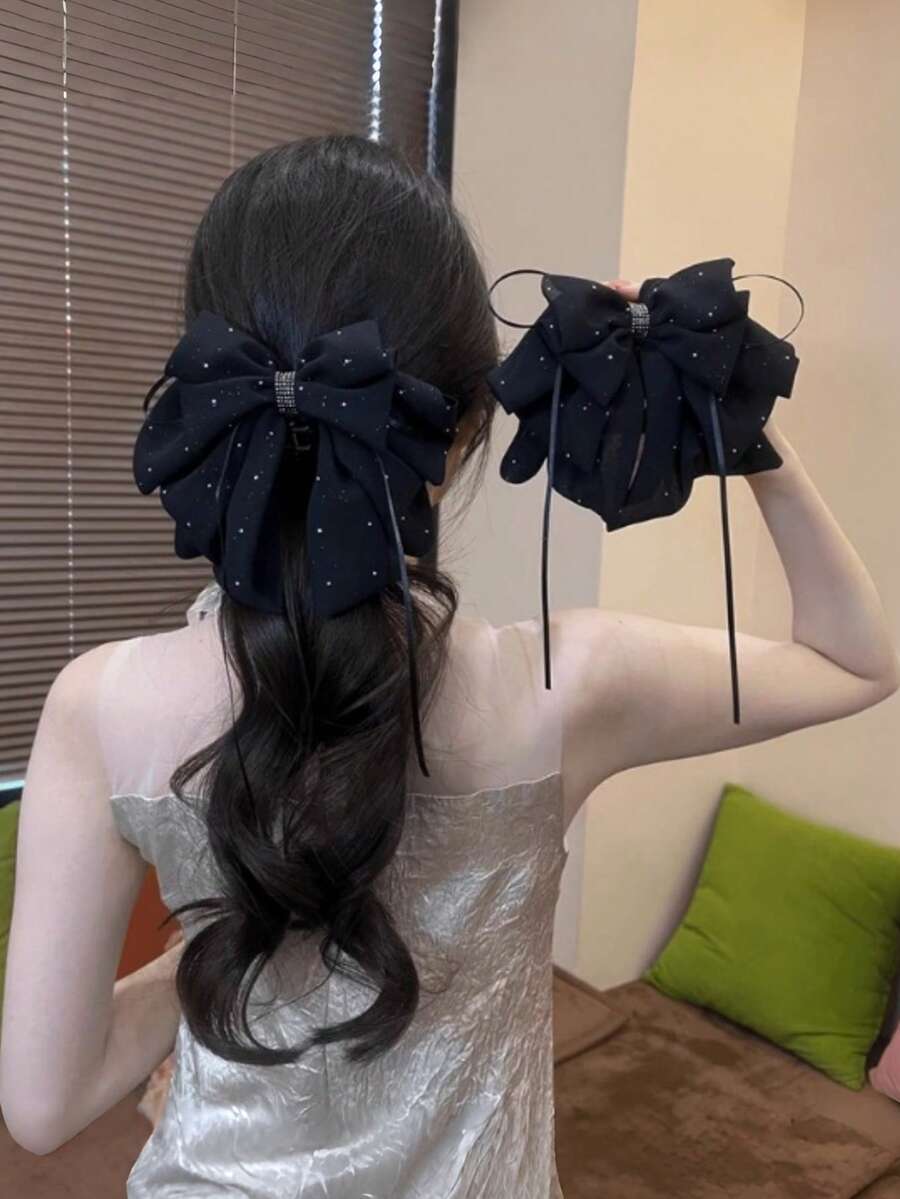 1pc Elegant Starry Sky Mesh Bow Hair Clip, Gentle Princess Style Hair Clip, Girls' Bowknot Ponytail Clip, Starry Pendant Graceful Hair Clip, Half-Zip, Perfect For Festivals, Parties, Weddings, Valentine's Day And Other Occasions Fashion Hair Accessories Elegant Hair Claws Women Hair Clutch Casual Hair Jaw Clip