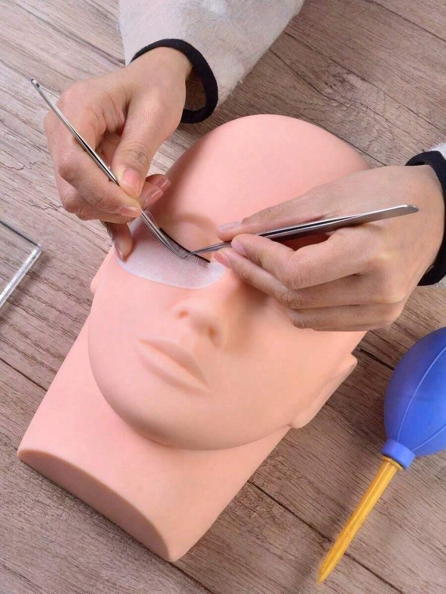 1pc Eyelash Extension Training Mannequin Head - Eyelash Extension Practice Model - Beauty Massage Training Head - Makeup Eyebrow Microblading Dummy Head - Soft Silicone Material - Eyelash Extension Tools