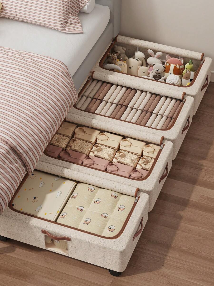 1pc Fabric Storage Box With Wheels, Foldable Portable Clothes Storage Bin, Removable Wheels, Dual Handles, Steel Frame Support For Wardrobe, Room, Dorm, Bedding, Bedroom Storage, Valentine's Day Gift & Decor
