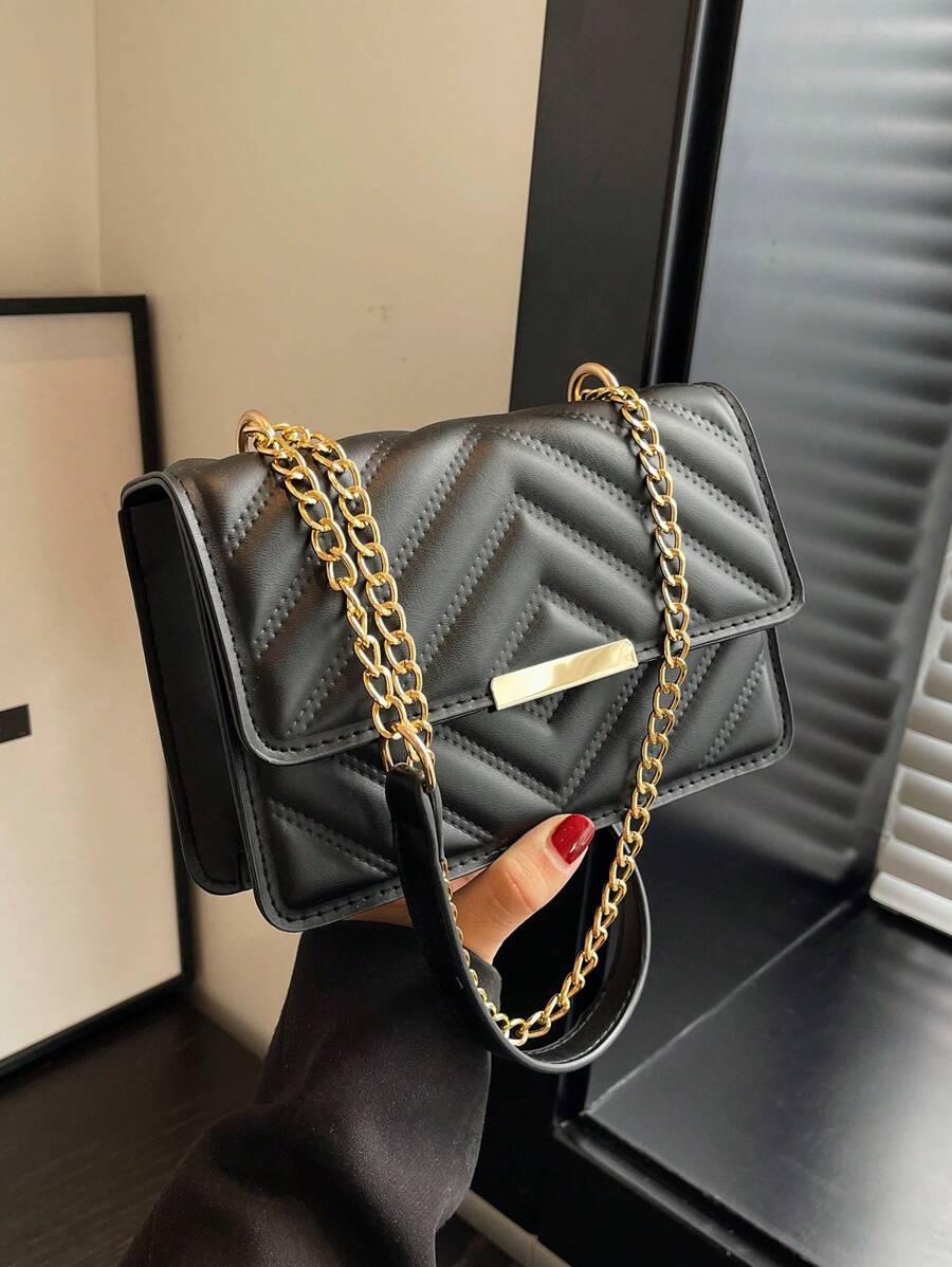 1pc Fashionable Minimalist Solid Color Groove Mini Square Magnetic Flap Crossbody Bag With Metal Chain Strap, Suitable For Women's Casual Daily Commute And Holiday Gifts