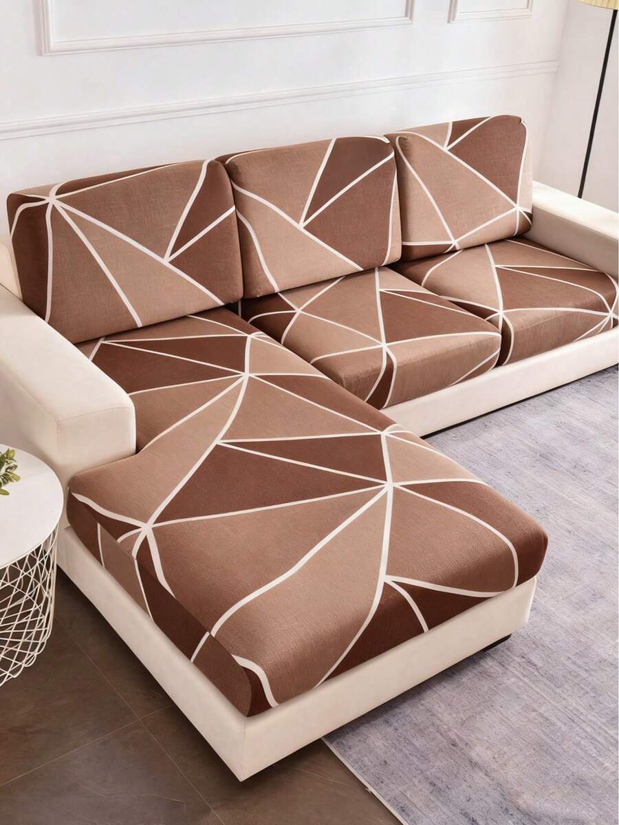 1pc Geometric Triangle Print Milk Silk Stretch Sofa Seat Cushion Cover, Suitable For All Seasons