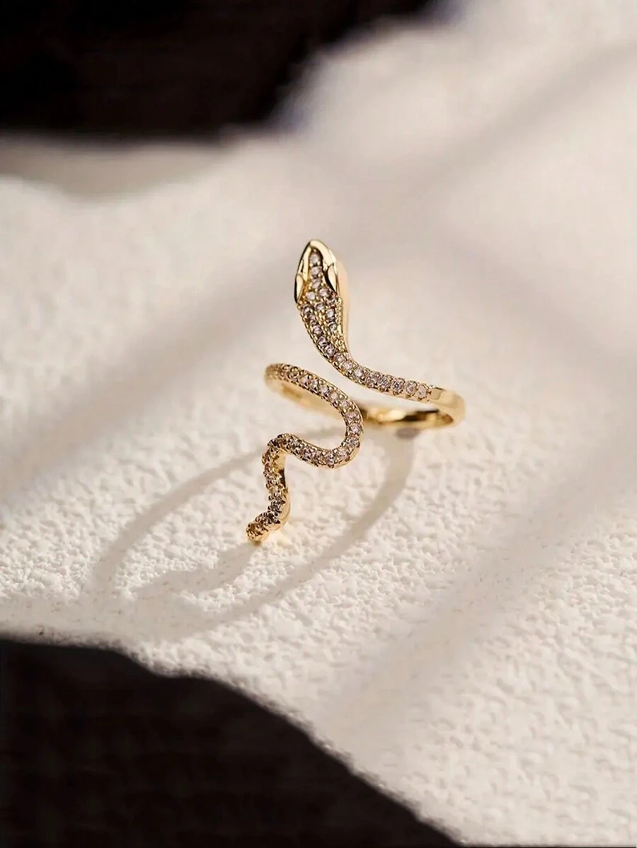 1pc Glamorous Rhinestone Decor Snake Design Wrap Ring For Women For Daily Decoration Copper Jewelry