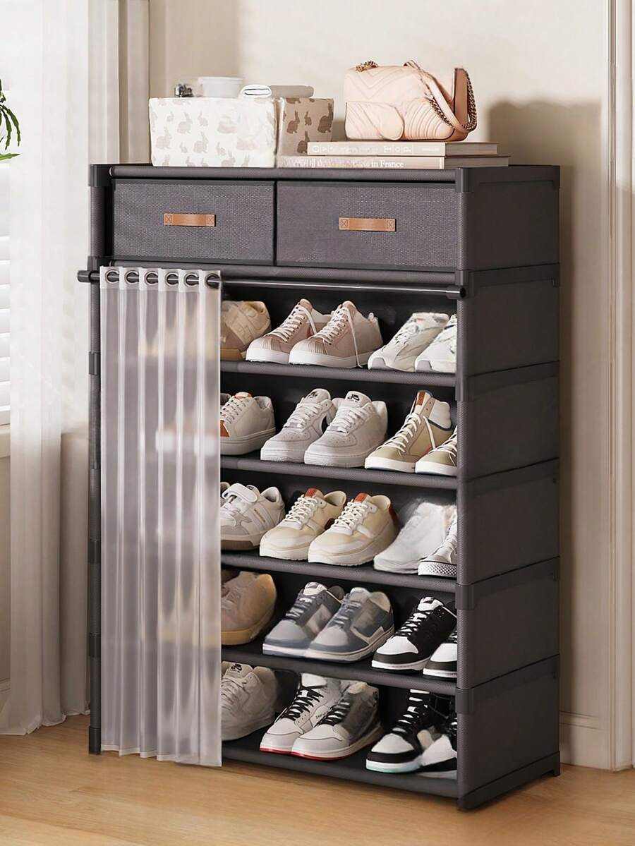 1pc Household Multi-Layer Shoe Rack With Curtains, Shoe Cabinet, Storage, Display Rack, With Drawers, With Curtains Shoes Storage Cabinet, Large Capacity Shoe Cabinet For Indoor And Outdoor Use, Suitable For Doorways, Household, Indoor, Festival Gifts, Valentine's Day Gifts, Children's Gifts