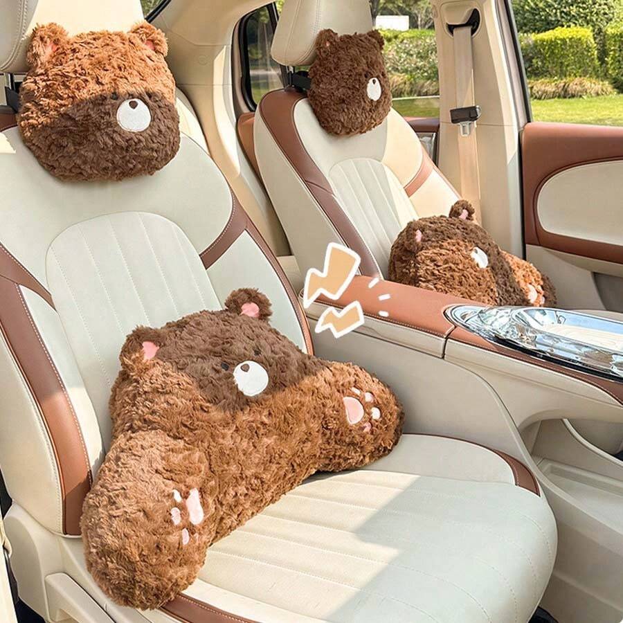 1pc Little Bear Plush Car Headrest, Waist Support, Neck Protection Pillow, Four Seasons Universal Car Pillow, Car Seat Cushion, Winter Warmth And Antifreeze Car Seat Cushion, Thick And Soft Plush Seat Cushion Car Pillow Car Seat Cushion