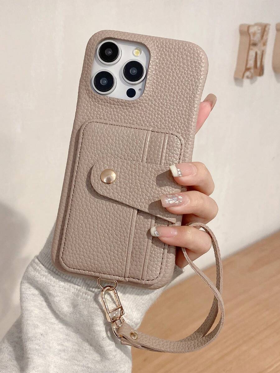 1pc Minimalist Stylish Litchi Texture PU Leather Lanyard Phone Case Wallet Compatible With IPhone 17 Air 16 16E 15 14 Plus 13 12 11 Pro Max, Pixel 10 9 Pro XL 8 7 6 9A 8A 7A 6A, Galaxy A15 A16 A25 A36 A56 A73 A06 A03 A03S A04S A81 A12 A13 A14 A22 A23 A24 A32 A52 A71 4G A34 A42 A53 A54 5G A21 A21S 2020 Note 20 10 Lite S20 S21 FE S22 S23 S24 S25 Plus Ultra, Faux Leather Protective Cover