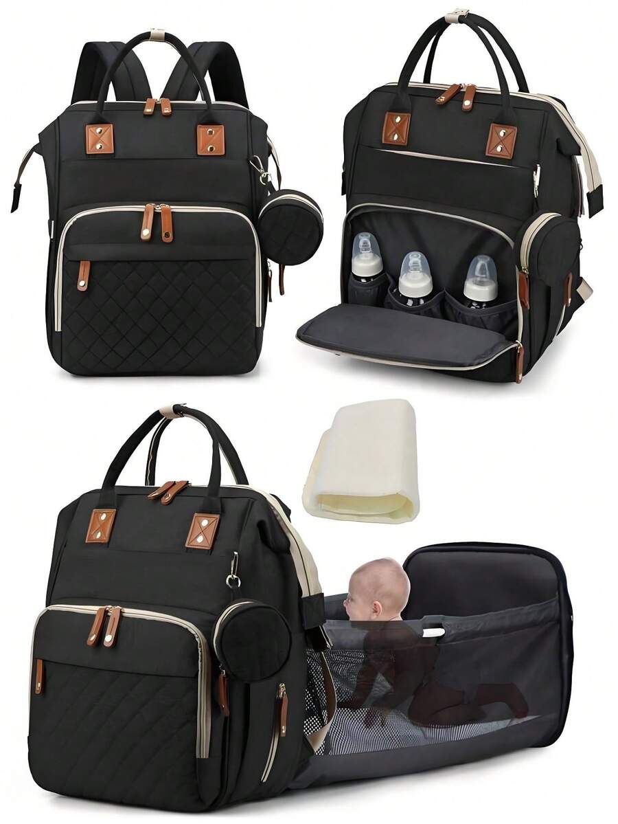 1pc Multifunctional Baby Stroller Bag, Large Capacity Folding Bed Mommy Backpack, Can Be Carried On Both Shoulders Or By Hand, Oxford Cloth Material, Strong And Wear-Resistant, With Dry And Wet Separation Bag/Sandwich Zipper Bag