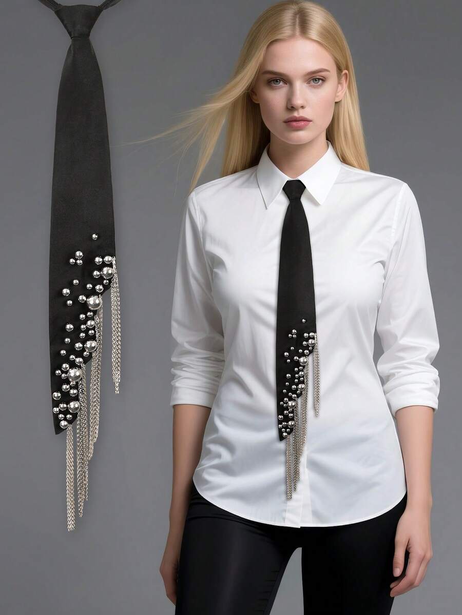 1pc New Luxury Pre-Tied Necktie, Women's Lightweight Luxury Necktie, Uniform Shirt Accessory, Niche Photography, School Style For Dress For Christmas Decor