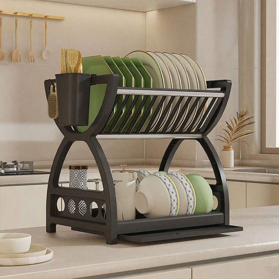 1pc Plastic Kitchen Rack, Dish Drainer, Multifunctional Bowl Cabinet, Plate & Cutlery Organizer, Double Layer Tableware Holder