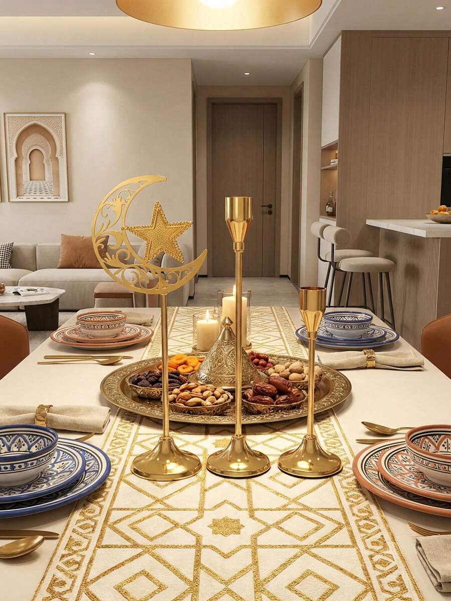 1pc/Set Metal Gold/Black Large Crescent Moon Candle Holder/Ramadan Lantern/Candle Holder/Windproof Glass Candle Holder