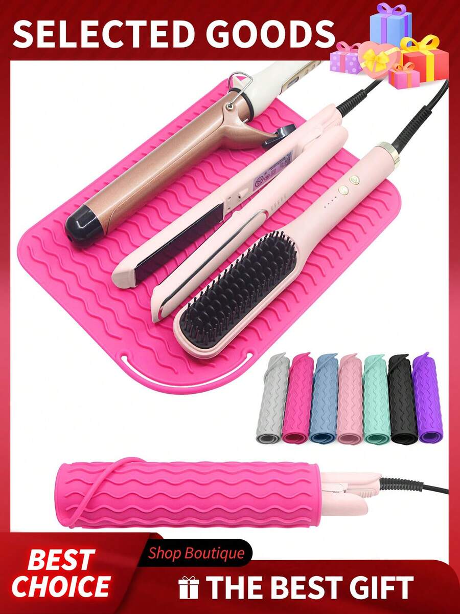 1pc Silicone Heat Resistant Mat, Hair Straightener Heating Pad, Curling Iron Insulation Pad, Styling Tool Cushion, Heat Resistant Mat For Hair Straightener And Curling Iron, Hair Styling Pad And Heat Insulation Mat,Makeup Bag,Travel Essential
