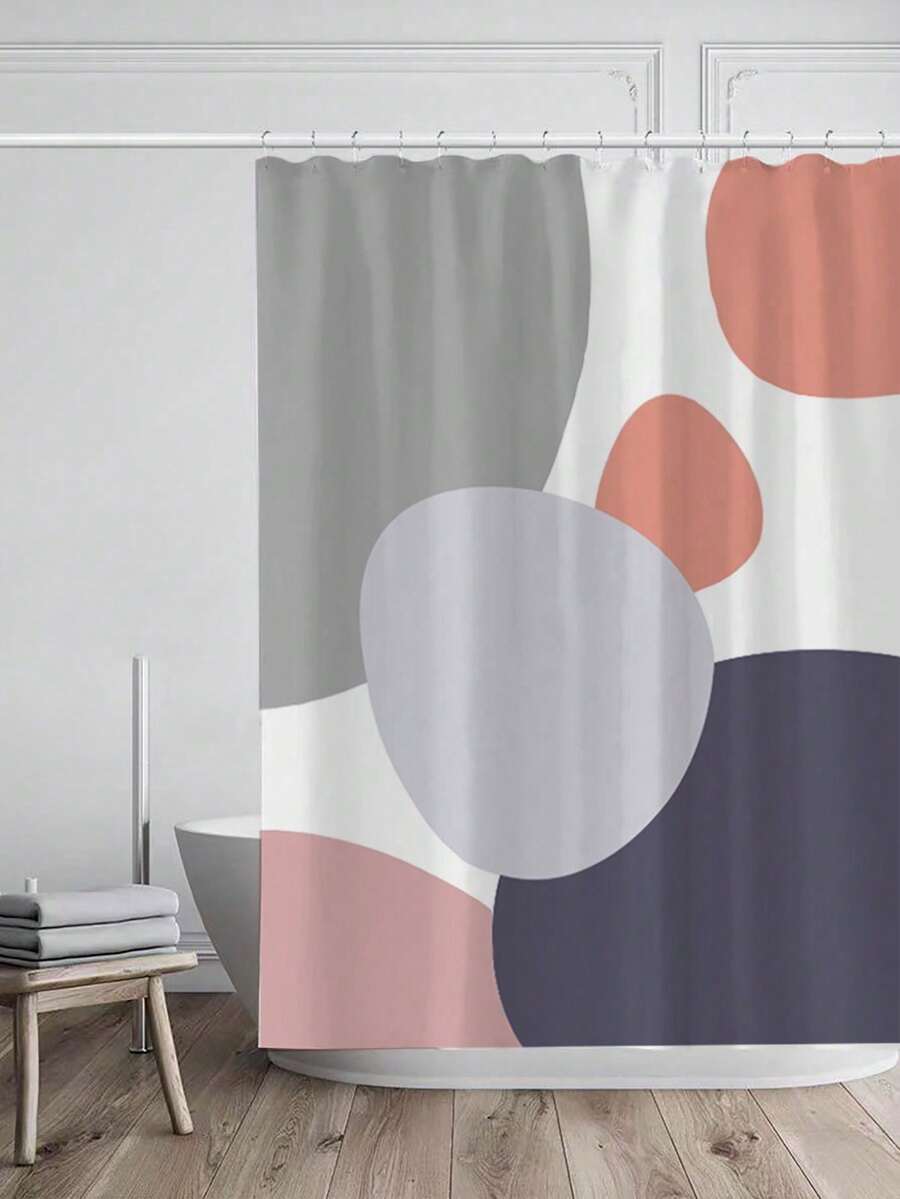 1pc Simple Style North Europe Bathroom Shower Curtain, Water & Mold Resistant, No Drilling Needed, Morandi Color Circle Pattern
