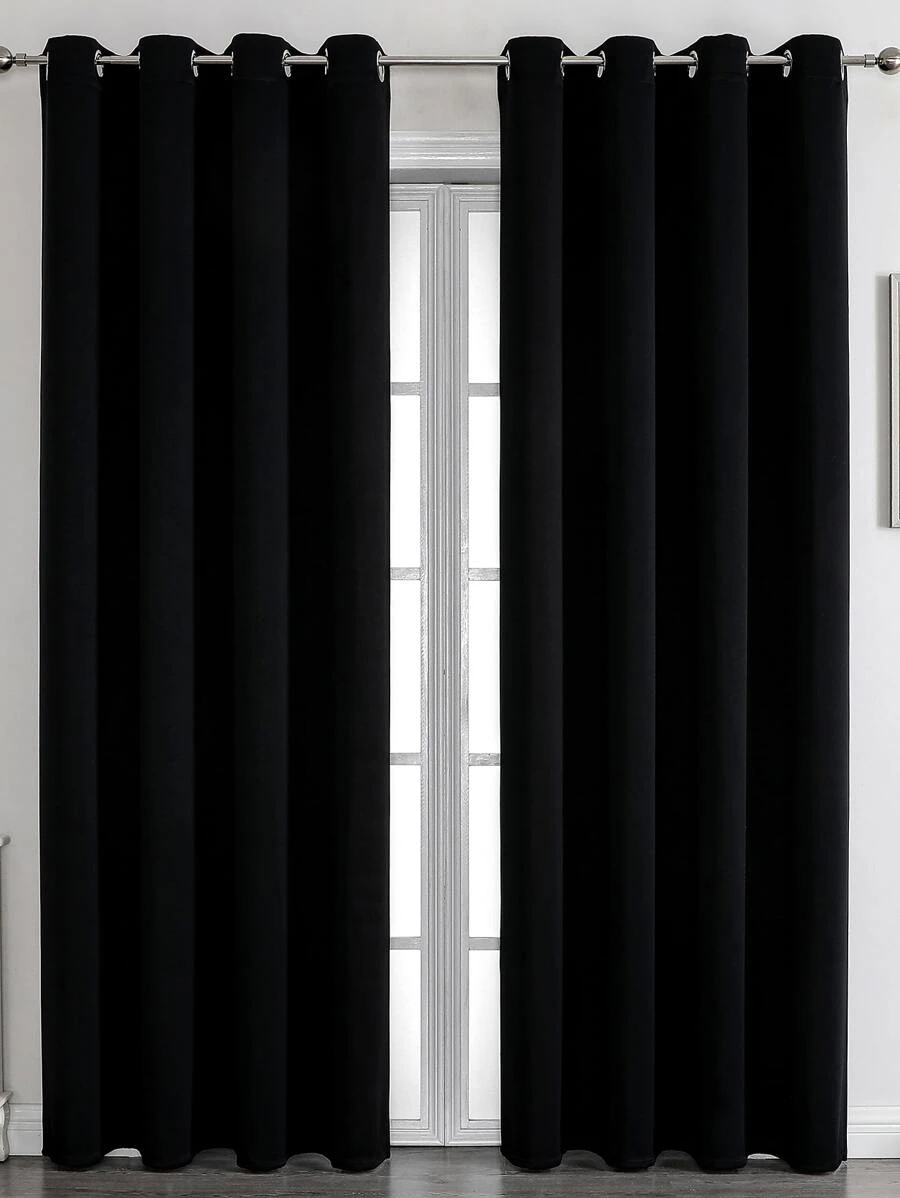 1pc Solid Color Polyester Curtains, Energy Blackout Light Blocking Thermal Insulated Curtains For Kitchen, Dining Room, Living Room, Bedroom, Study Room In Black, Deep Grey
