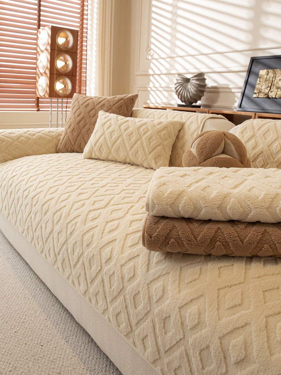 1pc Thick Soft Flannel Sofa Cushion Cover, Modern Minimalist Anti-Slip Warm Sofa Seat Pad, Dust-Proof Washable Sofa Slipcover, Beige Fresh And Fashionable, Soft And Fade-Resistant, Pet-Friendly Protective Cover, Adjustable For Corner Sofa, Bedroom, Office, Living Room Combination Furniture, 1/2/3/4 Seat Sofa