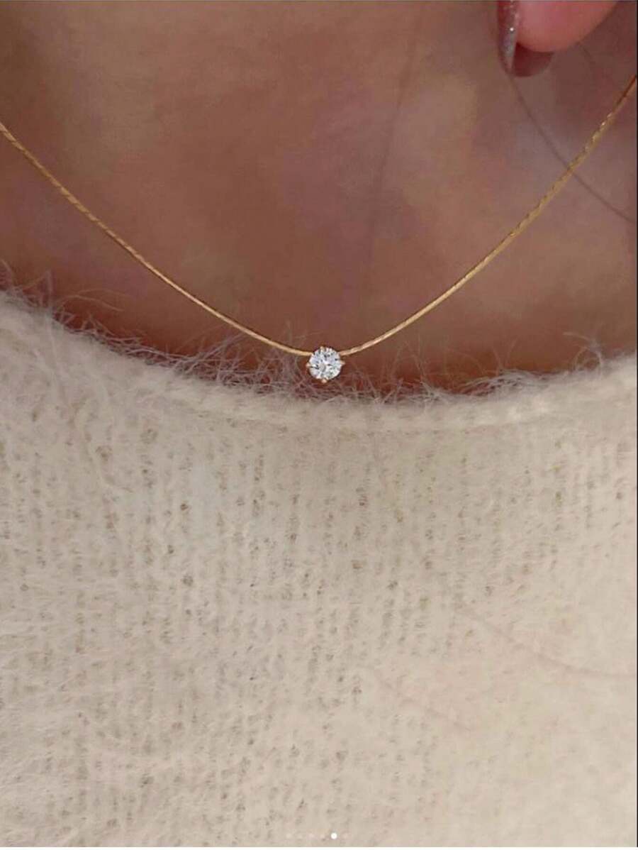 1pc Unique European Style Gold 6-Claw Rhinestone Pendant Necklace, Stainless Steel Clasp Choker, Suitable For Daily Wear And Date/Party