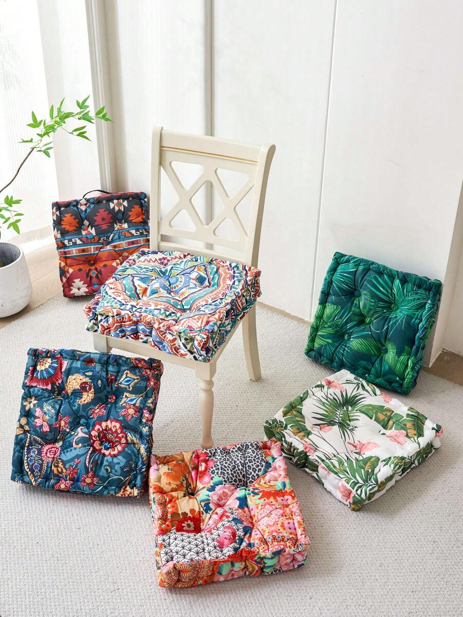 1pc Velvet Bohemian Style Indoor/Outdoor Chair Cushion, Seat Pad, Meditation Mat, Floral/Leaf/Striped Pattern, Machine Washable, Polyester Filled, Woven Cover, Multi-Purpose Use