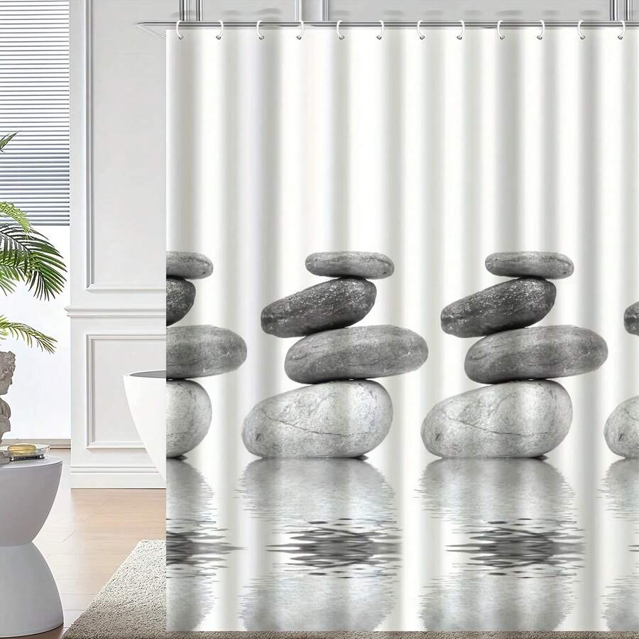 1pc Washable Art Theme Shower Curtain, Zen Stone Lotus Reflection Spa Bathroom Curtain, Waterproof Polyester Fabric, Washable, Artistic Theme For All Seasons, With Grommet Holes And Hanging Hooks