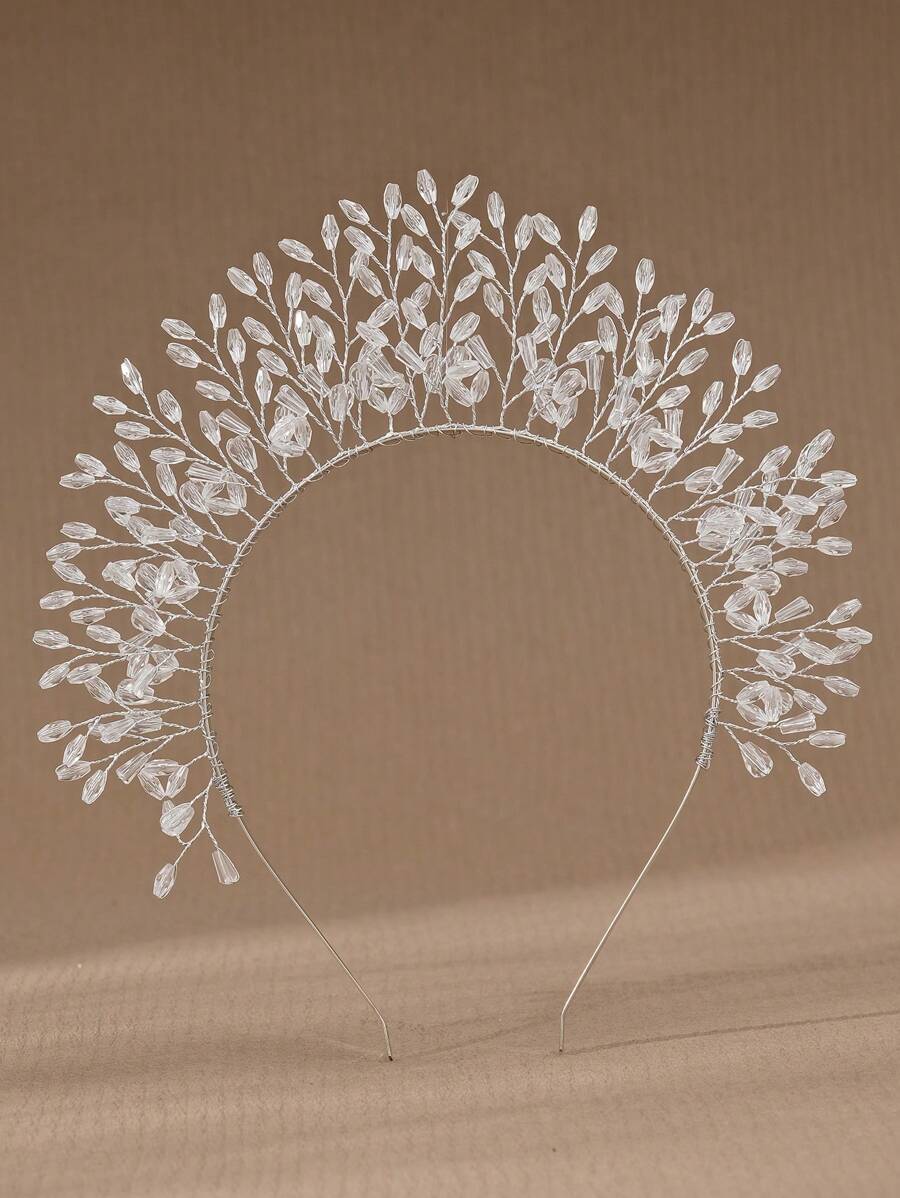 1pc Women's Fashionable Beaded Craft Vertical Crown Headband, European And American Bridal Decoration Elegant Tiaras Valentine's Day Accessories