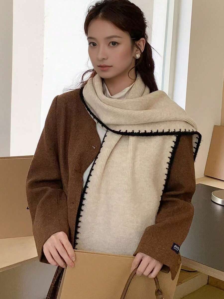 1pc Women's Fashionable Scarf, Soft Wax Wool Knitted Warm Thick Fleece Scarf, Suitable For Student Dresses In Winter