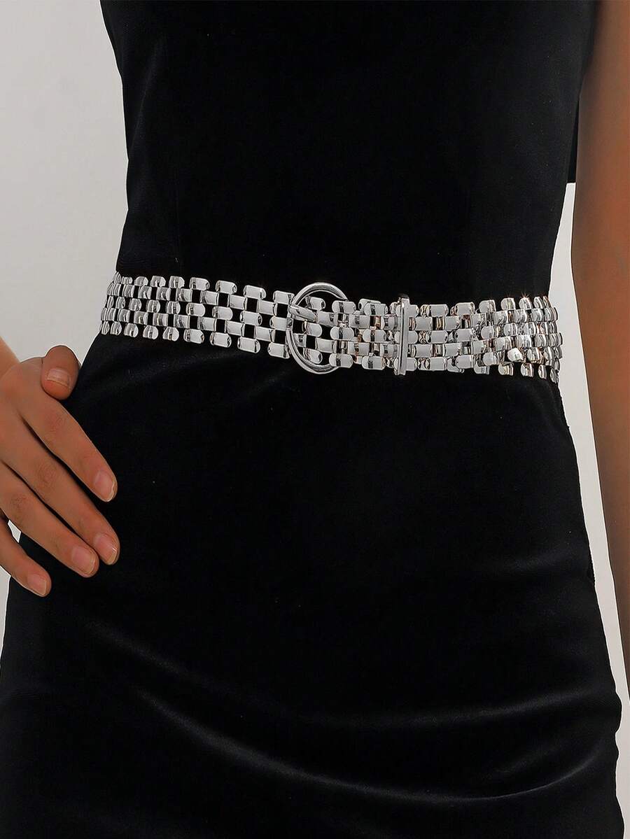 1pc Women's Punk Style Metallic Fish Scale Pattern Waist Belt