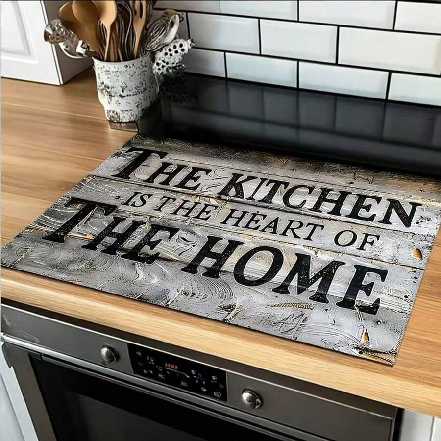 1pc Wood Grain Stove Cover Printed With "The Kitchen Is The Heart Of The Home" - Durable Gray Wood Grain Stove Cover Fits Most Ovens, Easy To Attach, Ideal Housewarming Gift