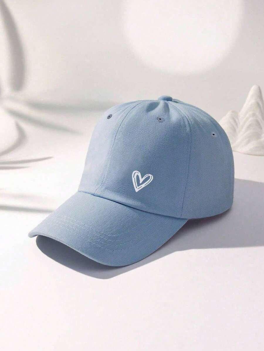 1pc Y2k Style Printed White Heart Design Sunproof Breathable Adjustable Baseball Cap Suitable For Daily Casual Wear And Travel Valentine's Day