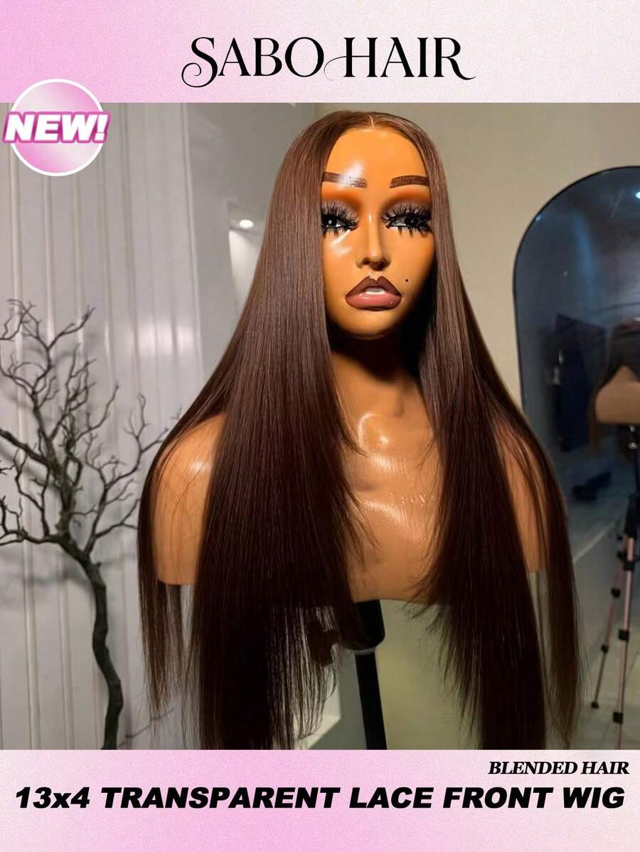 200% Density #4 Natural Brown 13x4 Lace Front Wig 13*6 HD Lace Bone Straight Wigs 32 Inch Human Frontal Hair Wig With Baby Hair For Women Daily Party Use Natural Pre Plucked Natural Hairline Blended Hair Wigs