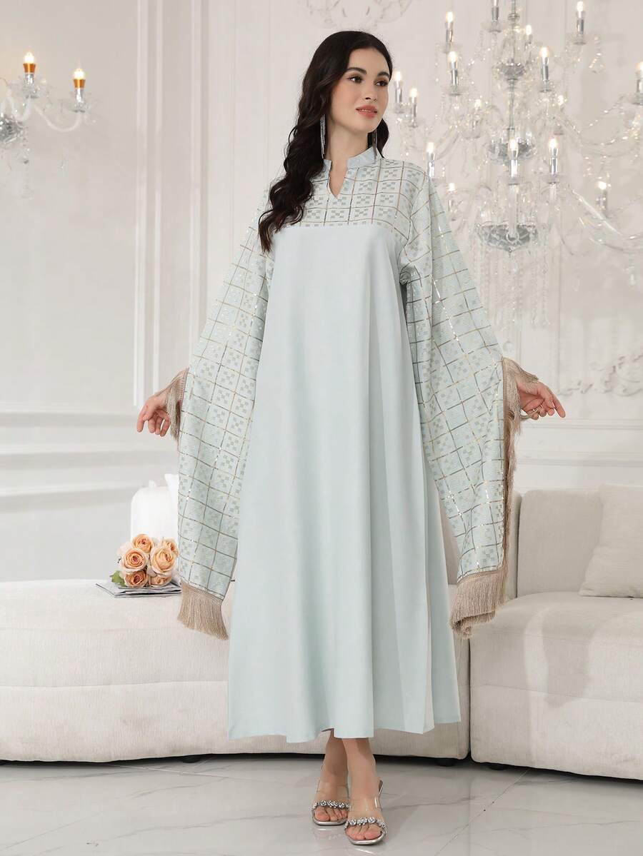 2026 New Style Ramadan Traditional Elegant Embroidered Arabic Women's Dress With Tassel Cuffs, Small Stand Collar And V-Neck, Fashion Luxury Creative