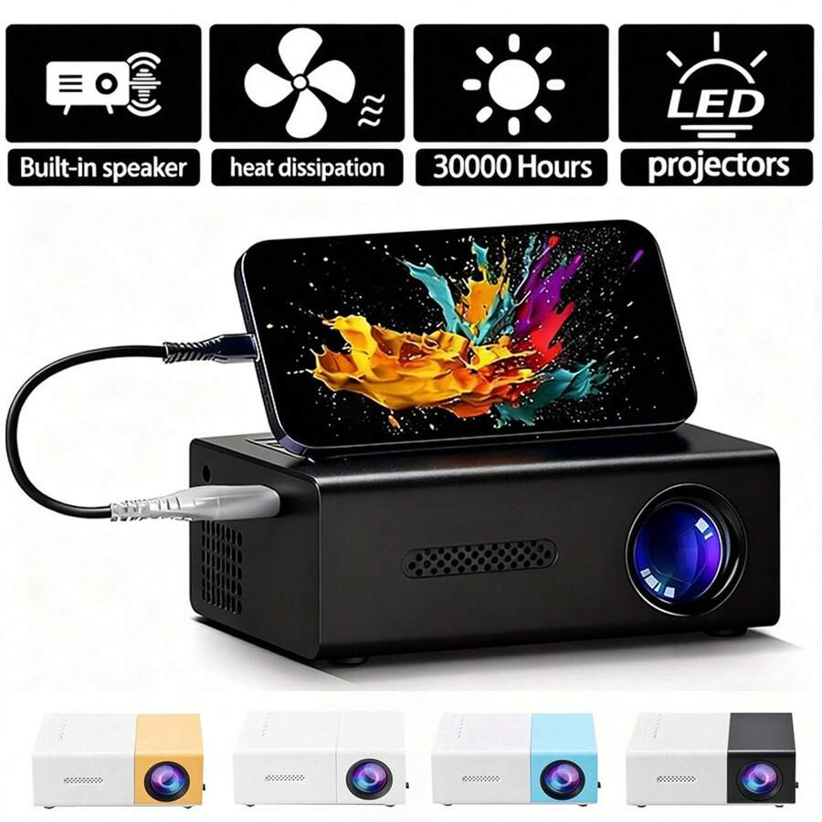 2026 Upgraded Portable Mini Projector, Travel-Friendly HD/USB/AV/TF Projector For Home Theater And Indoor Use, Multiple Colors Available, Includes US/UK/EU Plug Power Adapter - Fulfill Your Private Cinema Dream