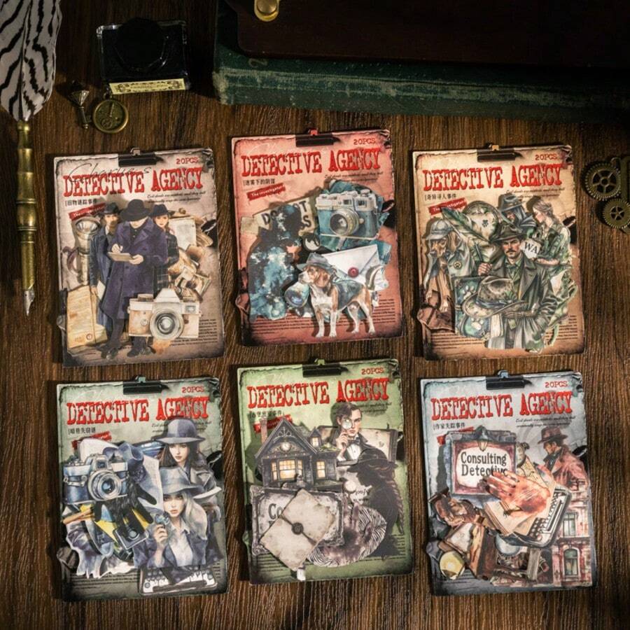 20pcs/Pack Detective Theme Stickers, Vintage Creative Aesthetic Sticker Decals, DIY Decoration Scrapbooking Craft Materials, Holiday Gift, Personalized Scrapbook School Supplies Scrapbook Supplies Stationery