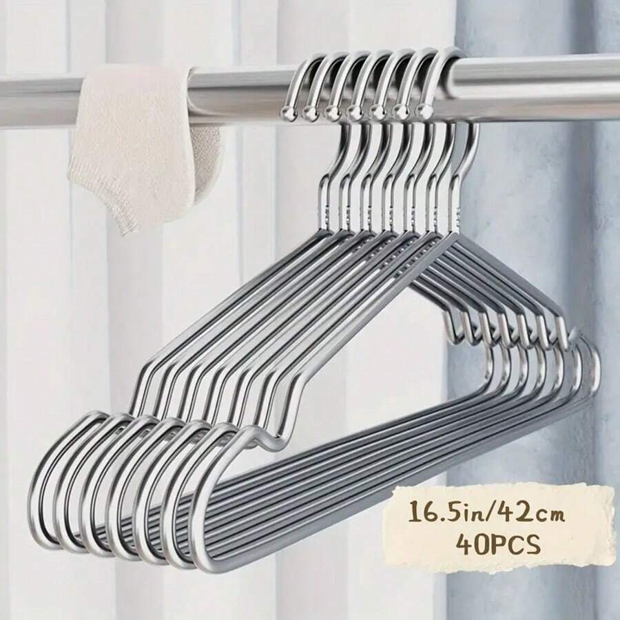 20pcs Stainless Steel Hangers Heavy Duty Polished Surface Space Saving Metal Organizer Hangers For Efficient Closet Storage Durable And Stylish Design Great For Home And Dorm Use Notched Shoulder Hangers Sturdy Hangers Dorm Essentials