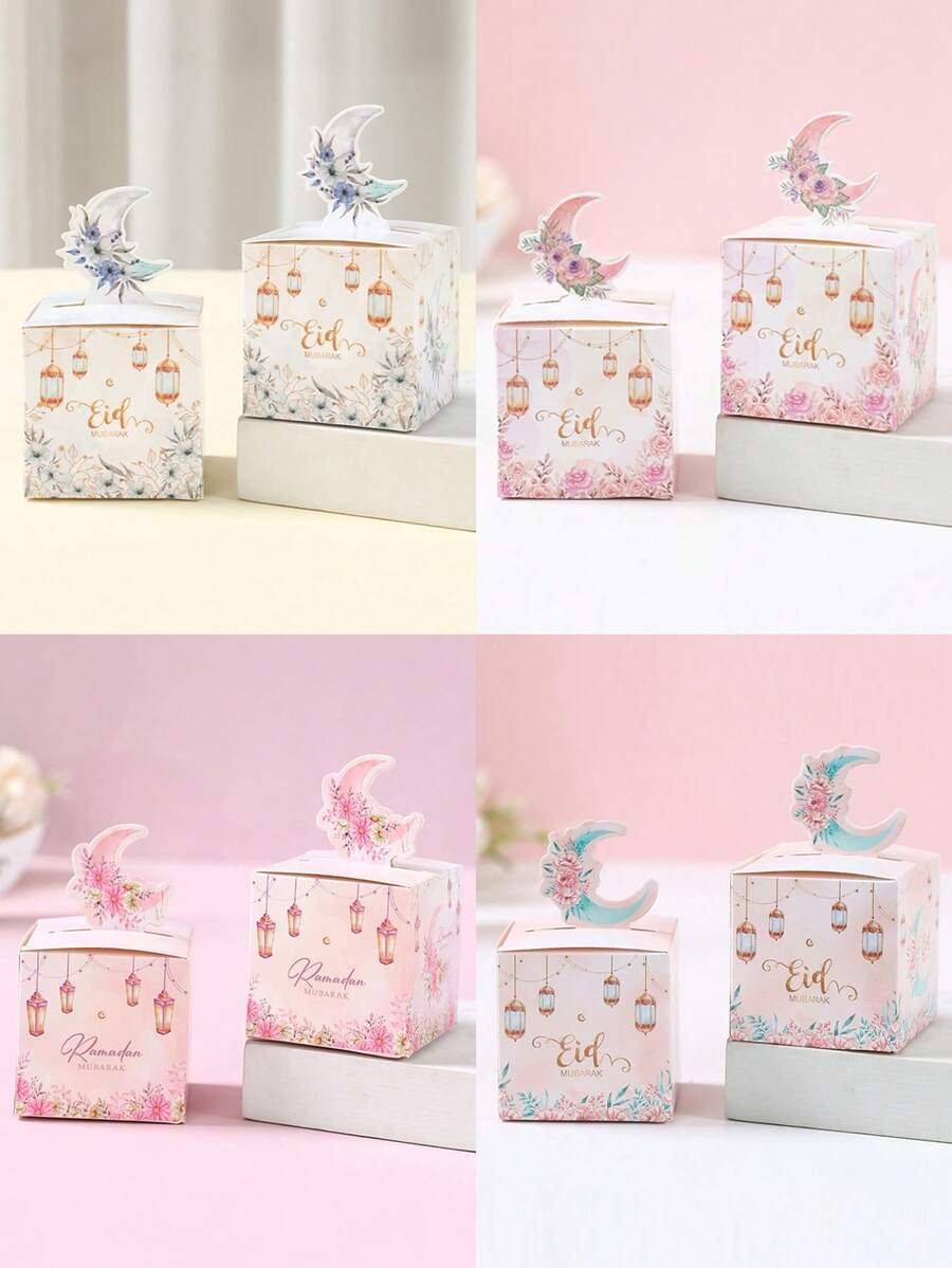 24pcs Eid Mubarak Gift Box, Eid Mubarak Ramadan Gift Bags, Biscuit Packaging Box Decorated With Ramadan Lantern, Crescent Moon And Flower Patterns, Eid Mubarak Ramadan Party Favor Bags, Ramadan Gifts, Eid Mubarak Gift Packaging Bags, Eid Mubarak Party Favor Packaging Supplies, Eid Mubarak Home Decor, Ramadan Decorations, Ramadan Eid Mubarak Ramadan Party Supplies, Eid Al-Adha Decorations