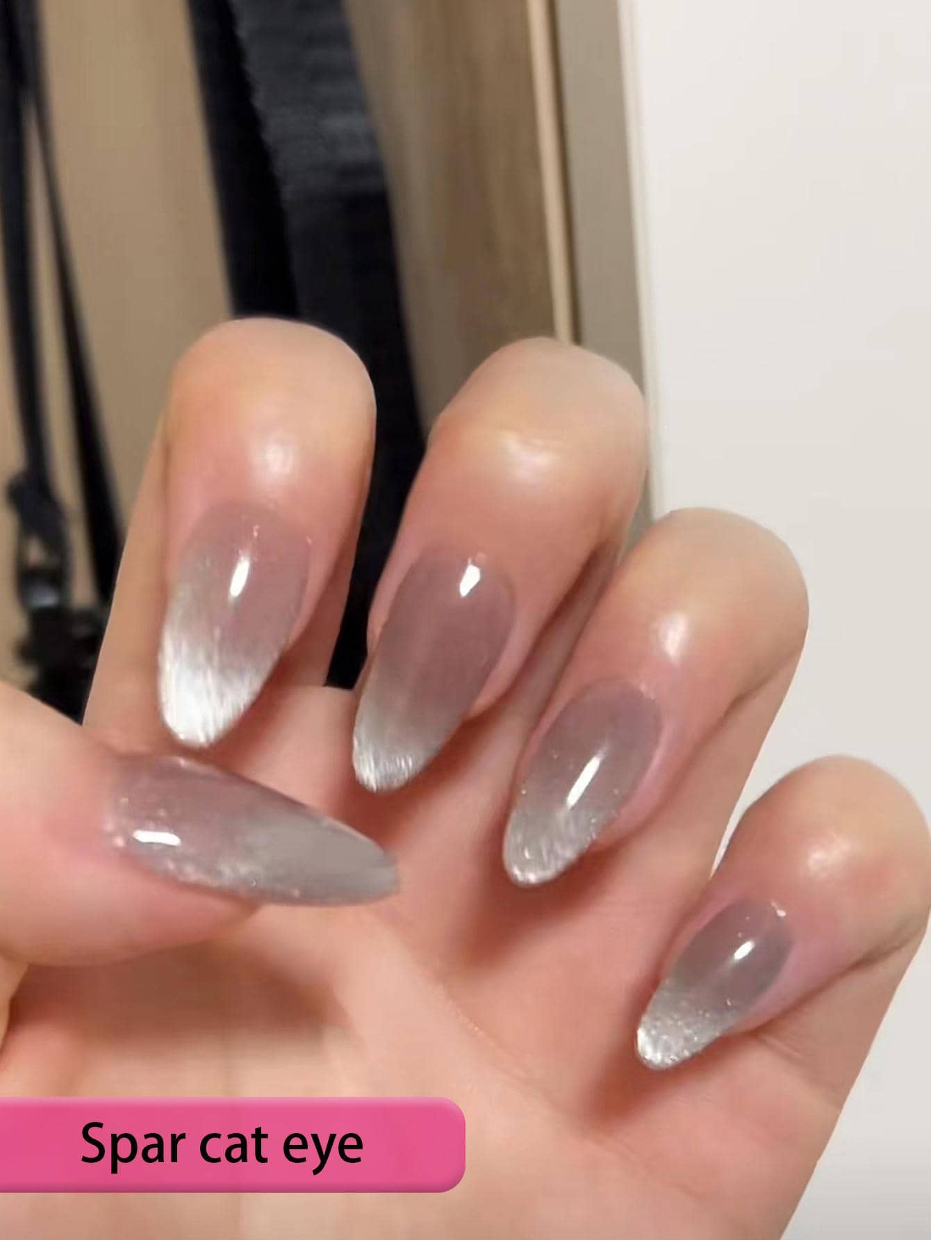 24pcs Short Almond Shaped Shiny Cat Eye False Nails, 1pc Tape And 1pc Nail File To Create Charming Manicure! Nail Art Supplies Set