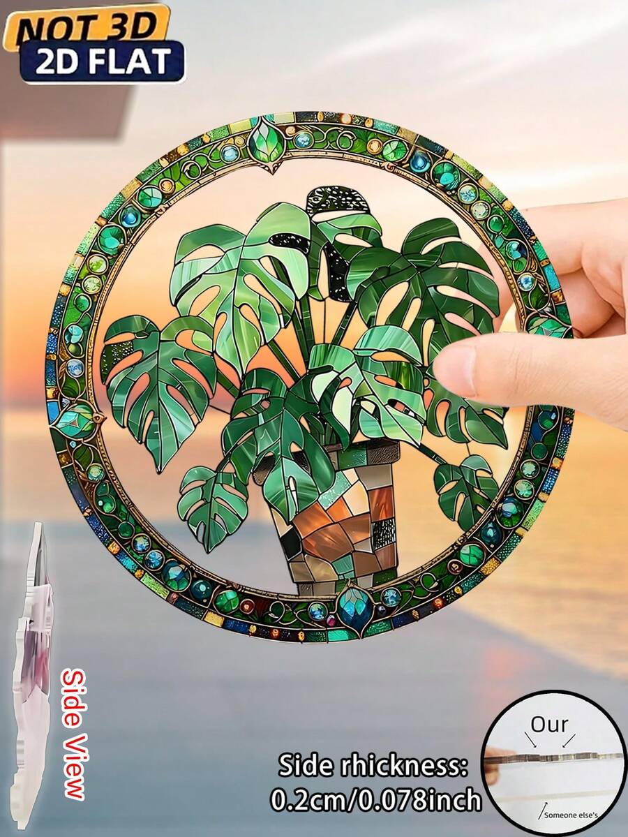 2D Acrylic Tropical Leaf Sunlight Catcher Decor, Hanging Plant Lover Wreath Sign, Home & Window Decoration Panel, Green Jungle Theme Seasonal Party Decor, Home Accents, Valentine's Day Gift