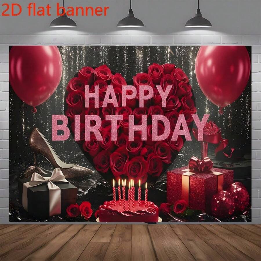 2D Flat Banner - Elegant Black And Red Birthday Party Banner