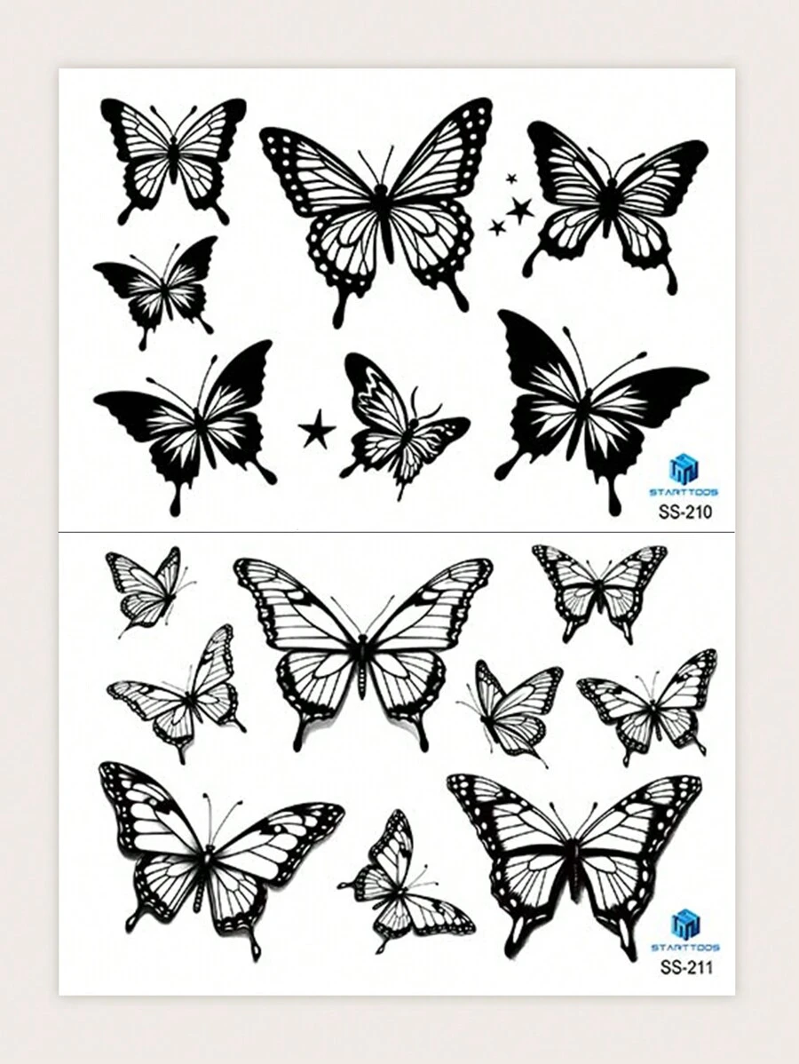 2pcs Black Temporary Butterfly Pattern Tattoo Stickers For Arms, Wrists, Chest, Abdomen, Back