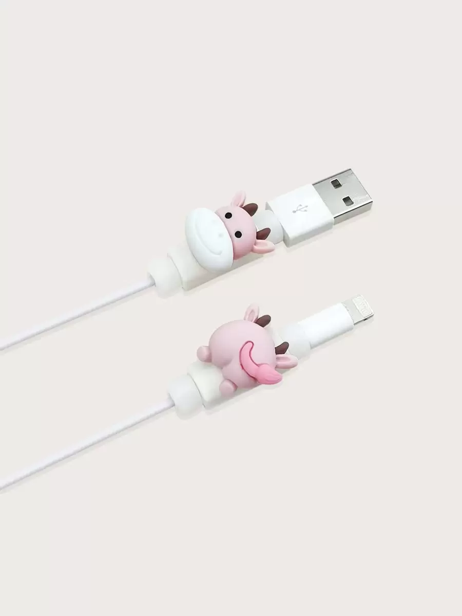 2pcs Cartoon Cow Design Data Cable Protector Charger Protector