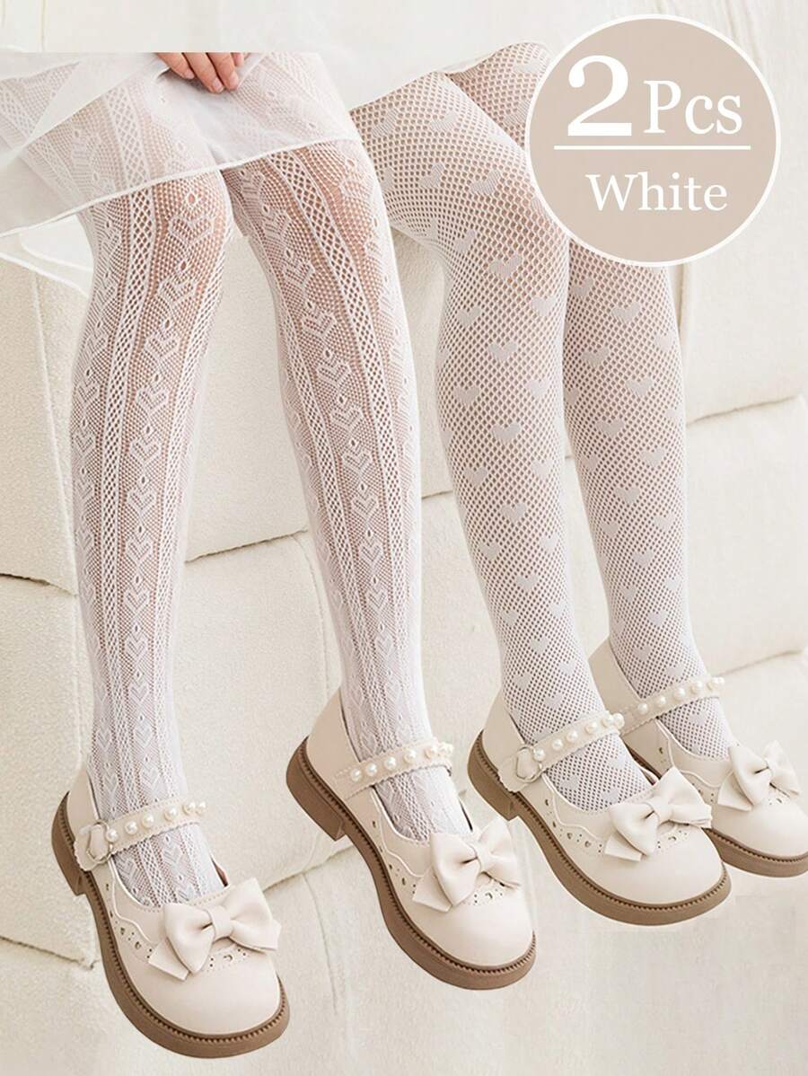 • 2pcs Girls' Lightweight Hollow Out Pantyhose, Thin Mesh Stockings, Spring/Summer