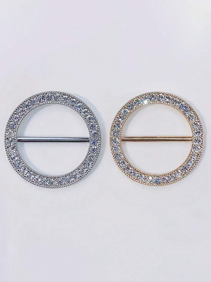 2pcs Gold/Silver Rhinestone T-Shirt Clip, Fashion Rhinestone Scarf Clip, Elegant Scarf Waist Belt Buckle For Dress