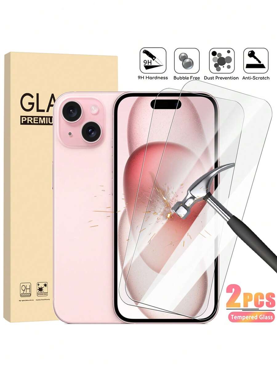 2pcs High Definition Full Coverage Tempered Glass Screen Protector, 9H Hardness, Anti-Scratch Protection, Compatible With IPhone 17/16/16e/16Pro/15/15Pro/14/Promax/11/X/Xs/7/8Plus