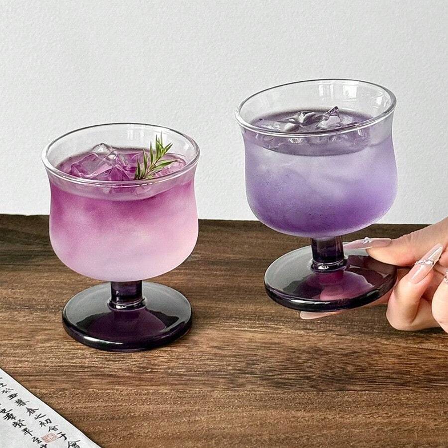 2pcs Purple Stemware, Curved Glass Cups, Sweet Wine Glasses, Champagne Cocktail Glasses, Dishwasher , Perfect Stemware, Essential Glassware For Birthday Party And Home