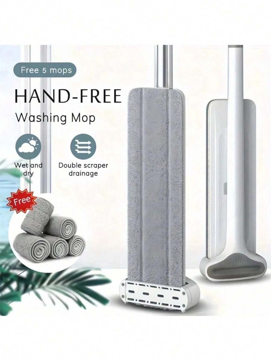 2pcs Replacement Mop Pads, Large Automatic Self-Wringing Flat Mop, 360° Rotatable Adjustable Cleaning Mop, Dry & Wet Dual Use, Hands-Free Super Microfiber Mop, Suitable For Hardwood Floors And Window Cleaning, 2025 New Household Cleaning Tool