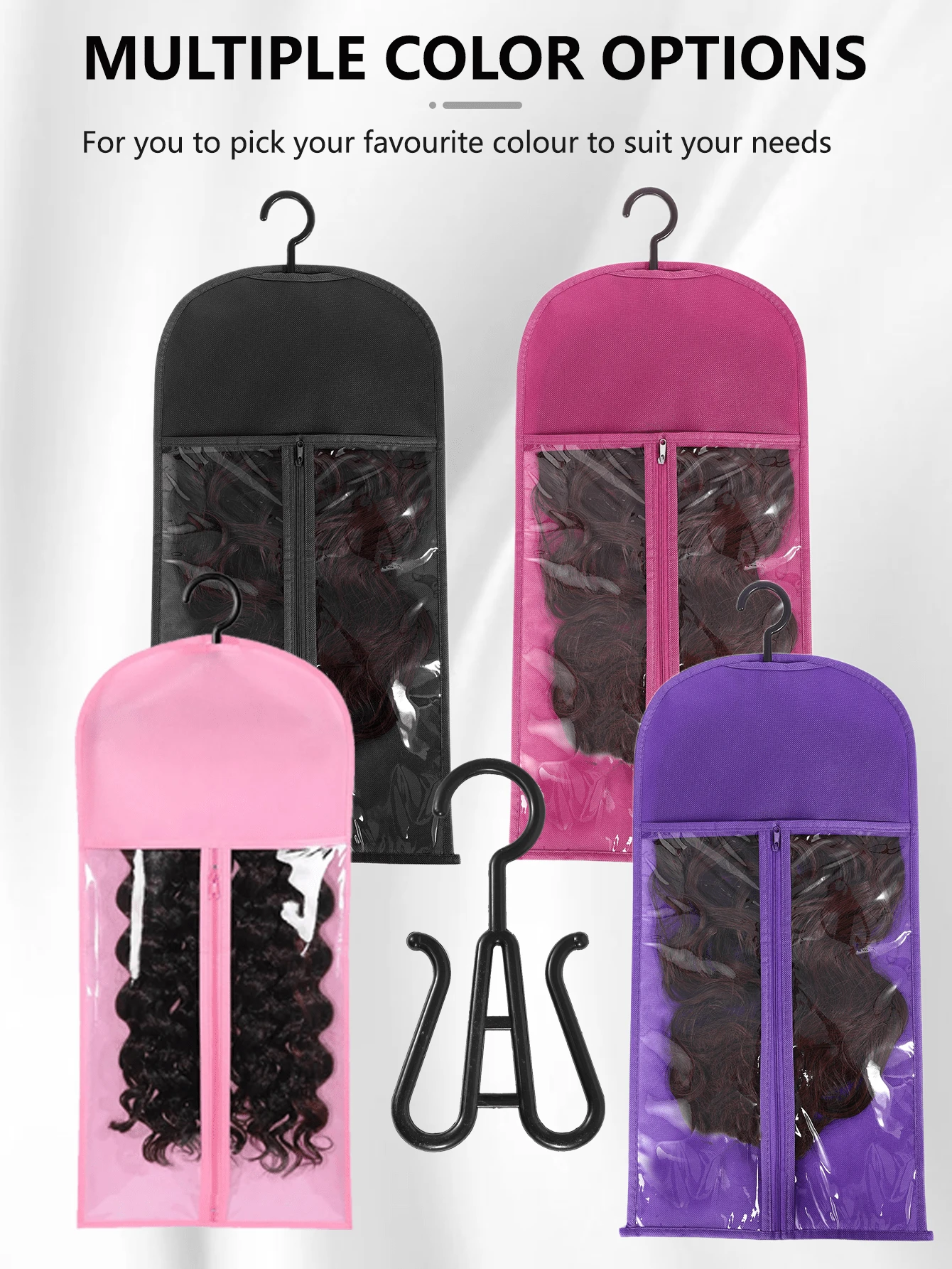 2pcs Wig Storage Bag, Wig Hanger With Dust Cover, Zipper Wig Clip, Non-Woven Wig Hanger (Wig Not Included)