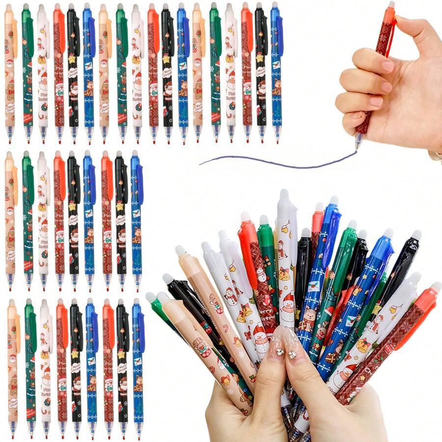 36-Piece Retractable Ballpoint Pen Set. Featuring Santa Claus And Reindeer Designs, Black Gel Ink, Perfect For Holiday Party Gifts And School Or Office Use. Christmas Pens, Christmas Theme. Student Stationery.