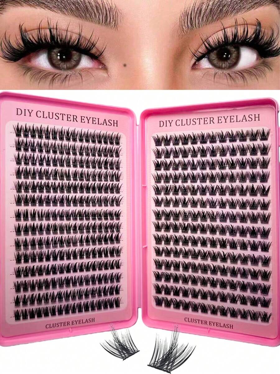 384 Pieces/28 Rows Of Cartoon Style False Eyelash Clusters, D-Shaped Curl, Anime Style False Eyelash Clusters, Natural Makeup False Eyelashes, Fairy Style False Eyelash Clusters, Suitable For Beginners, Easy To Carry, Reusable, Lash Glue, Lashes, Eyelash Glue