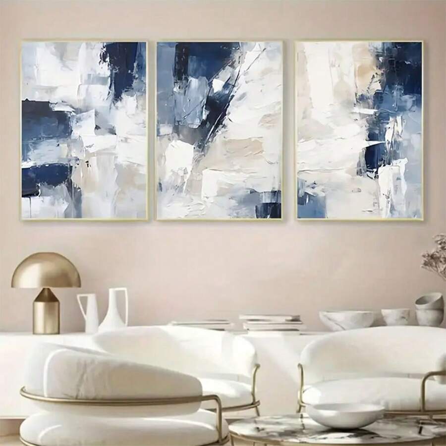 3pcs Modern Navy Blue Abstract Canvas Art Prints Frameless Wall Decor For Living Room, Bedroom, Dorm - Waterproof & Durable Posters, Perfect Gift Idea Wall Art Decor 30x40cm Framed Wall Paintings For Bedroom